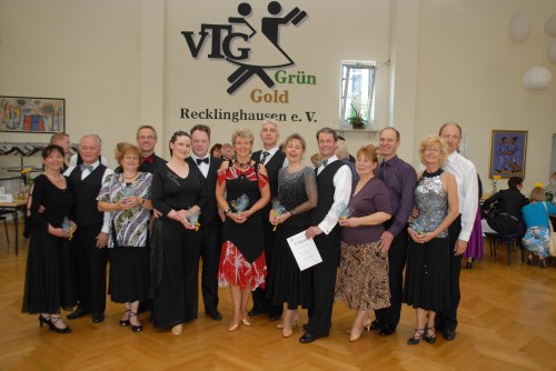 Die Vestische Tanzsport Gemeinschaft Grün-Gold war mit fünf Paaren vertreten, die zusätzlich von der 2. Sportwartin Gabriele Moosbauer begleitet wurden, die an diesem Tage die Münsteraner Turnierleitung mit dem TNW-Beauftragten Horst Westermann tatkräftig unterstützte.